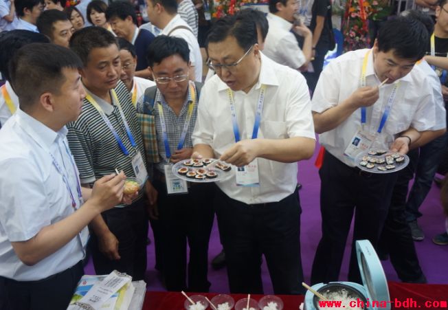 黑龍江北大荒米業(yè)集團展廳位于C展廳的主路上,黑龍江省農(nóng)墾總局局長王有國、黨委副書記徐學陽、副巡視員郭寶松蒞臨米業(yè)展位參觀指導,在試吃新產(chǎn)品后,總局領(lǐng)導對米業(yè)產(chǎn)品給予了高度評價。展會期間米業(yè)集團董事長、總經(jīng)理林長華陪同總局領(lǐng)導參觀并講解,同時在現(xiàn)場指導布展、交流合作等事宜。