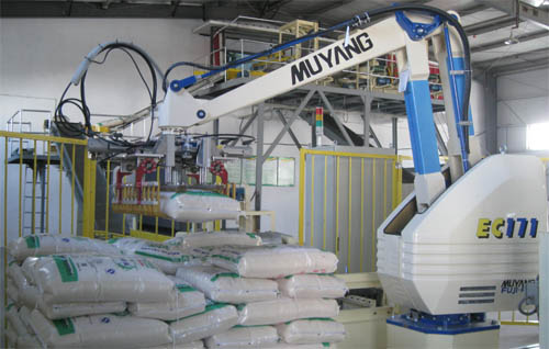 為加快實現(xiàn)北大荒米業(yè)集團百億工程目標,二九〇制米公司于今年4月5日開始,加大力度、加快速度,全面抓好二期工程建設。圖為生產(chǎn)線上安裝的國內(nèi)先進碼垛機器人。